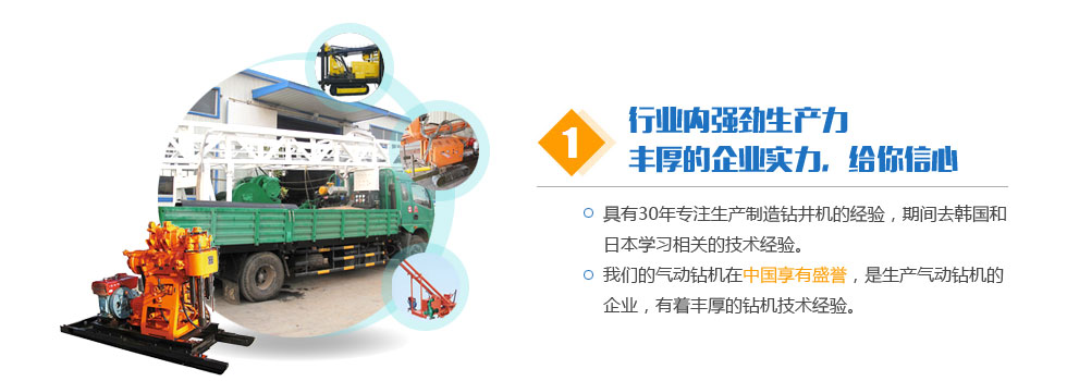 客戶(hù)共創(chuàng)雙贏(yíng)。堅(jiān)持科技先導(dǎo)、質(zhì)量第一、信譽(yù)第一。讓我們用真誠(chéng)的智慧共同締造事業(yè)的成功。讓我們用真誠(chéng)的智慧共同締造事業(yè)的成功。希望與您的合作,能為我們的雙方共添輝煌。經(jīng)營(yíng)宗旨:質(zhì)量求生存,信譽(yù)樹(shù)品牌,價(jià)格贏(yíng)打井設(shè)備市場(chǎng),創(chuàng)新圖發(fā)展。我們將以一流的技術(shù)換取您的信賴(lài)和欣慰。公司以人為本,廣納天下人才,技術(shù)力量雄厚。公司堅(jiān)持以人為本,以?xún)?yōu)取勝,精誠(chéng)服務(wù),持續(xù)改進(jìn)的質(zhì)量方針和氣動(dòng)鉆機(jī)服務(wù)宗旨。真誠(chéng)地與